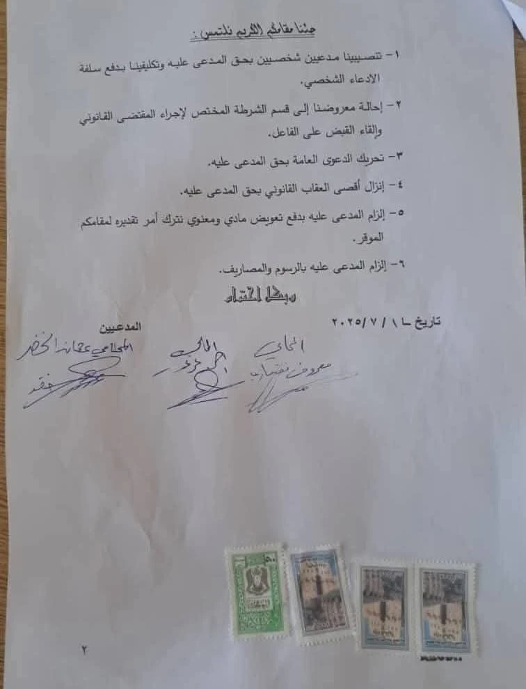 تضمنت الدعوى مطالب بتنصيب المحامين كمدعين شخصيين، وتحريك الدعوى العامة ضد المنشد، وإحالته إلى الجهات المختصة لإنزال أقصى العقوبات القانونية بحقه، كما طالبوا بإلزامه بتعويض مادي ومعنوي جراء ما اعتبروه انتهاكًا للمشاعر الدينية والوطنية.